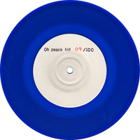 101 blue vinylBlank b-side label with "Oh peace kid" stamp, #/100 (101st copy not numbered)These were made to sell at Posi Numbers 2003, as the first pressing was sold out and the band didn't want to make a full second press. These were pressed at a different plant than the first press, and one large hole test press exists. The B-side label had to be left blank because the plant deemed the original artwork "pornographic" and refused to use them. |